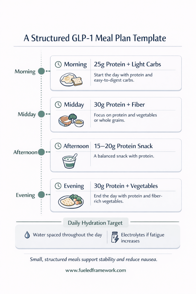 A well-designed GLP-1 meal plan has a few non-negotiable structural principles. These are not preferences — they are the framework that makes everything else work.